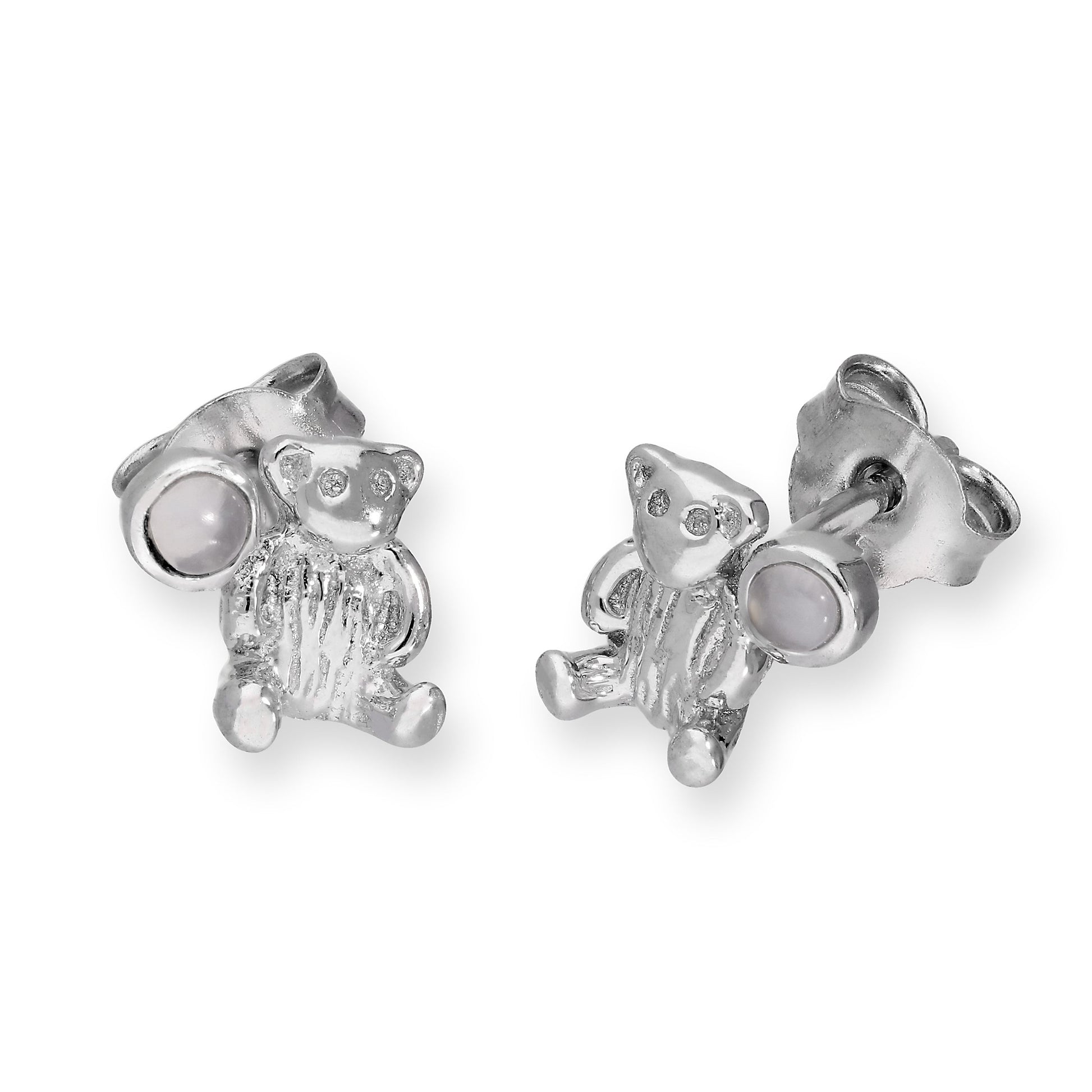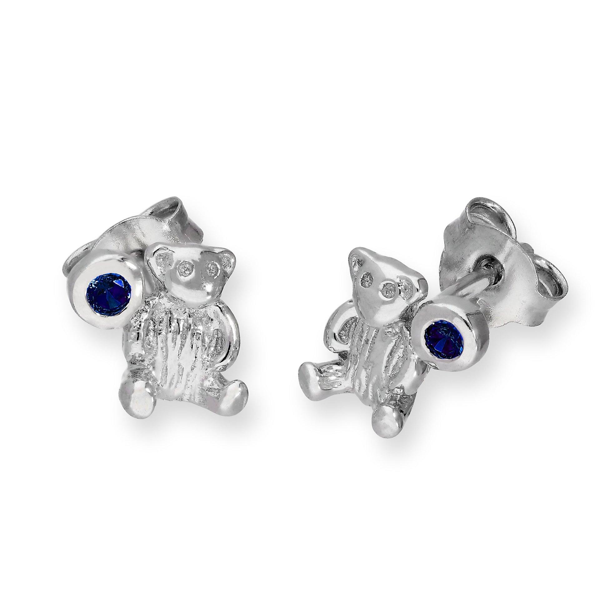 Sterling Silber Teddybär & CZ Kristall Geburtsstein Ohrstecker
