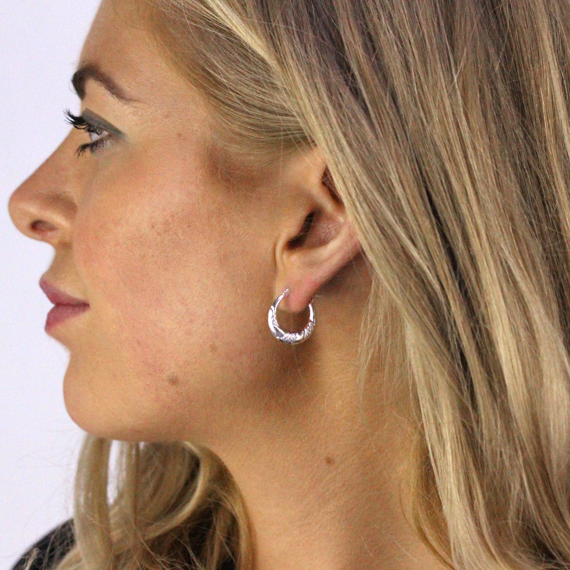 Sterlingsilber Strukturiert Gedreht 18mm Creolen Ohrringe