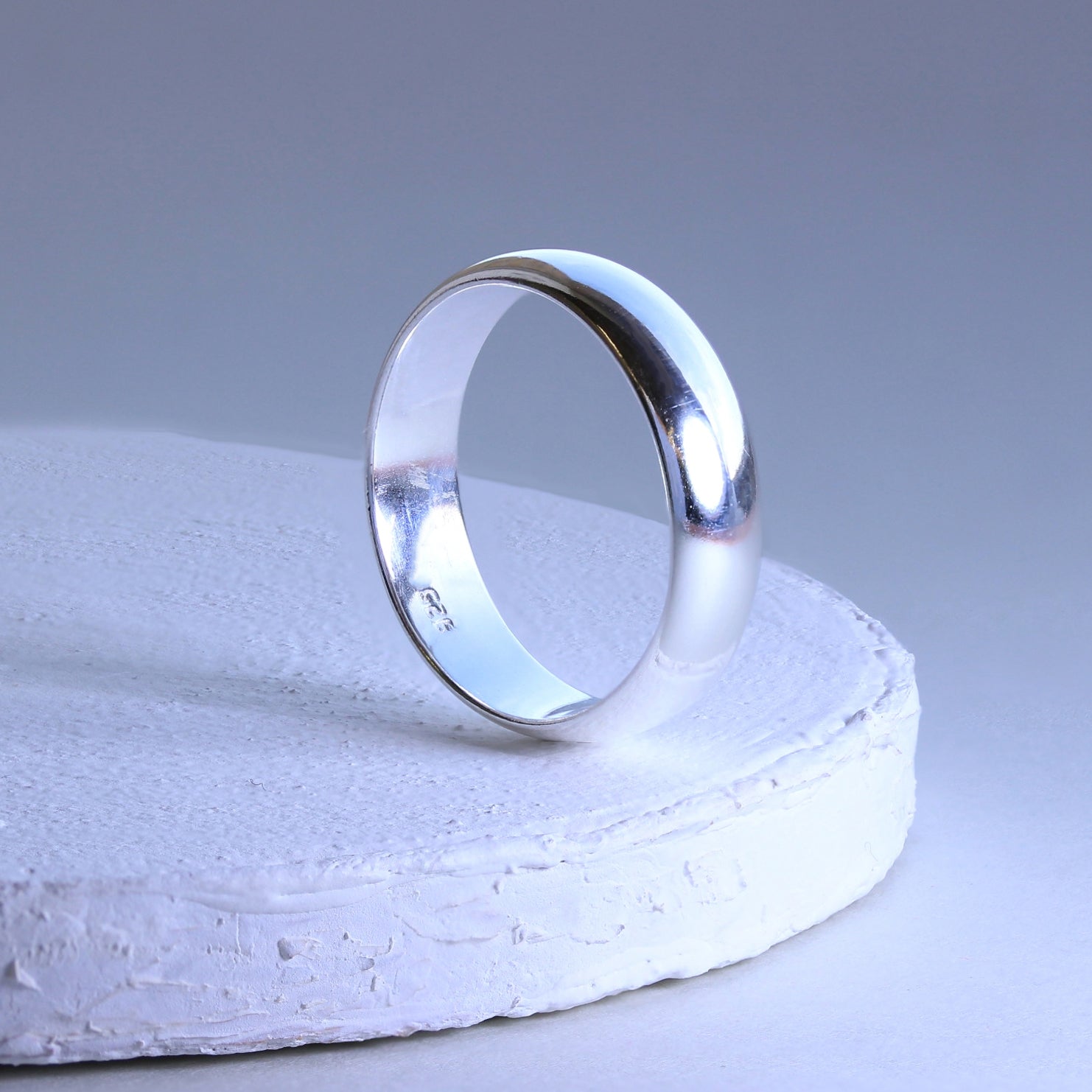 Sterling-Silber-Ehering, 6 mm dick, D-förmig – Größe I–Z