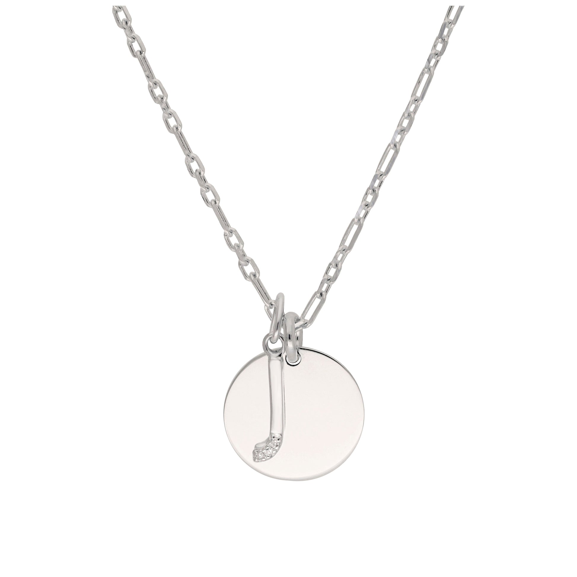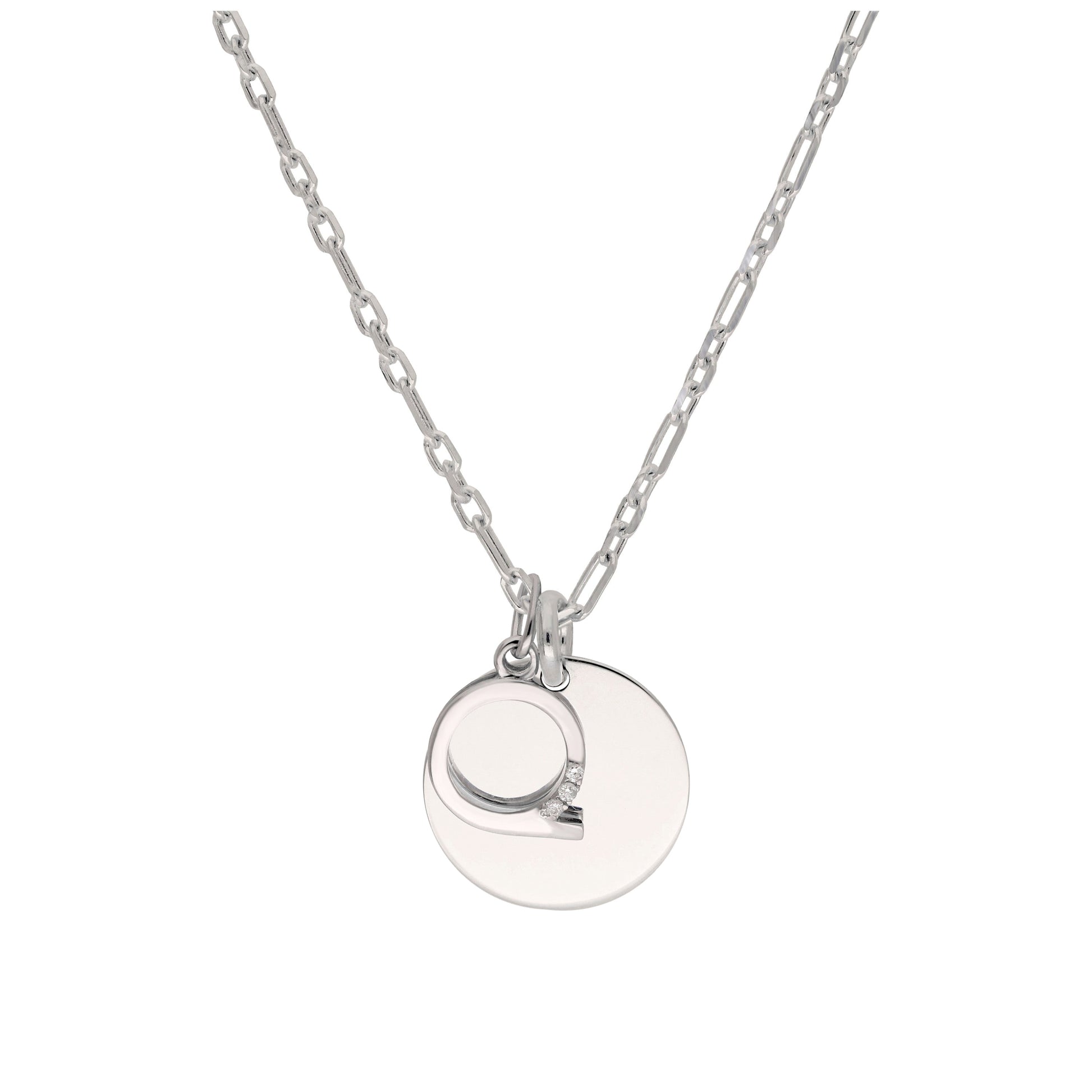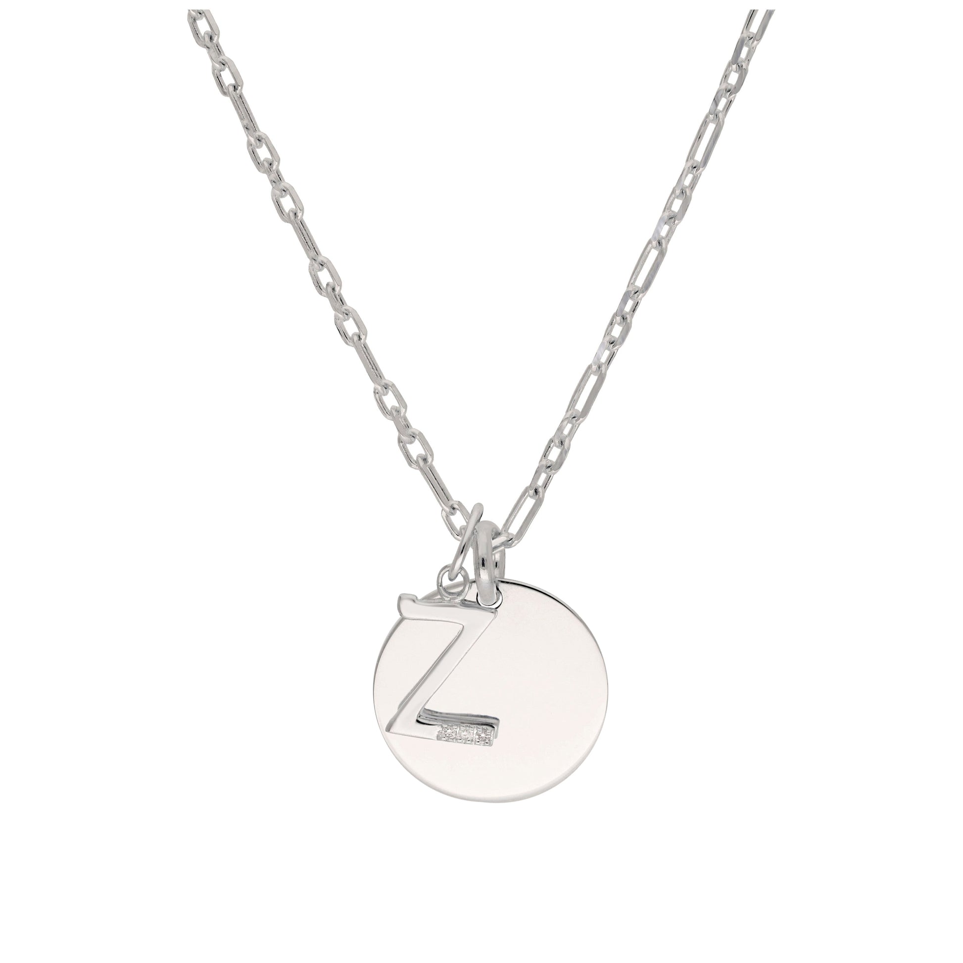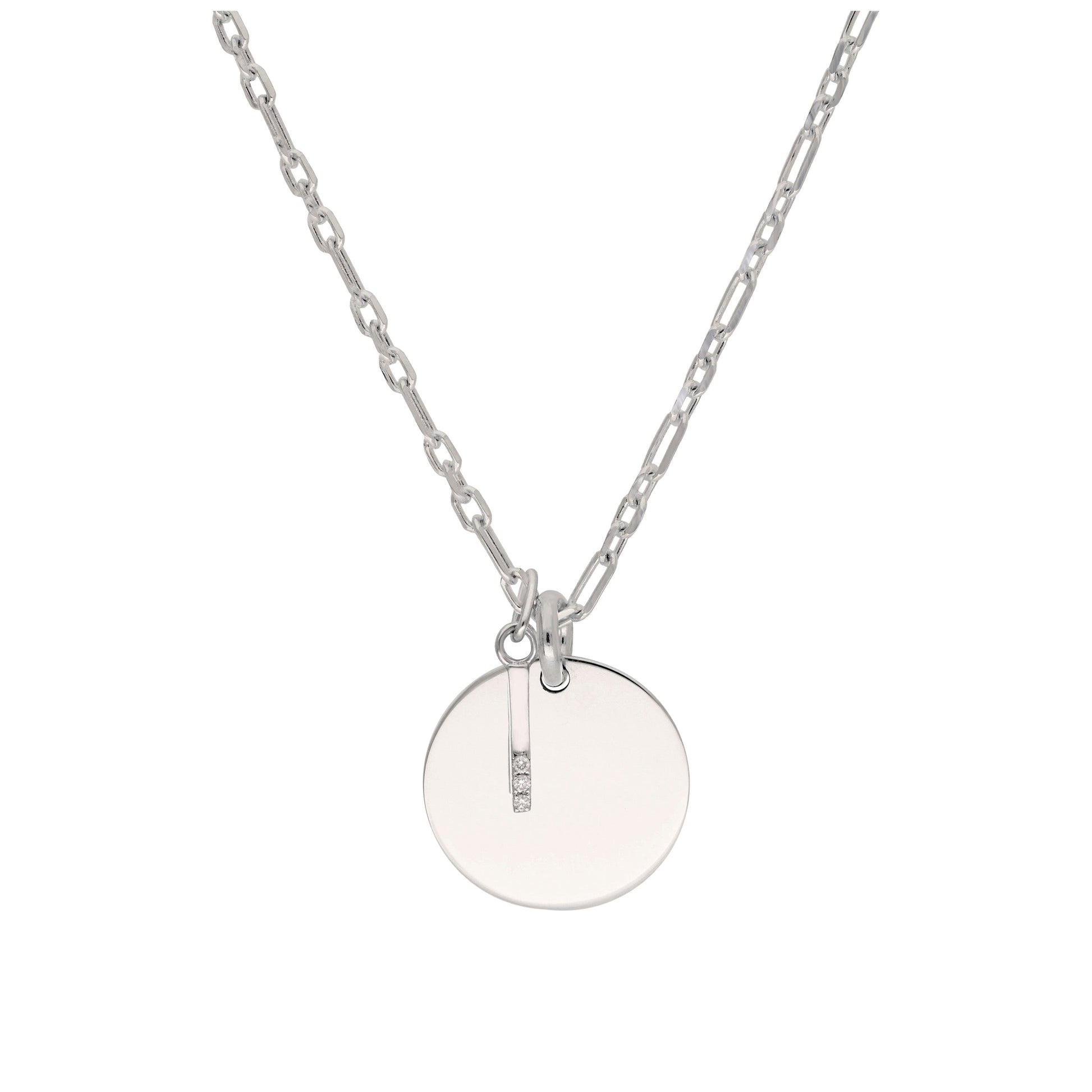 Sterling Silver & Triple 1.2pt Diamond Letter A - Z & Engravable Tag Necklace 16 - 24 Inches