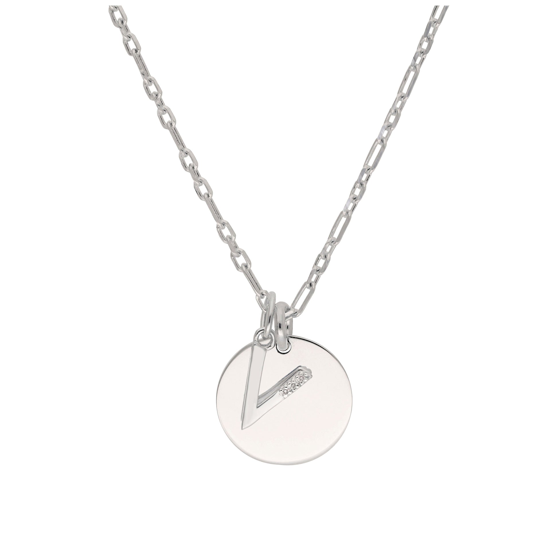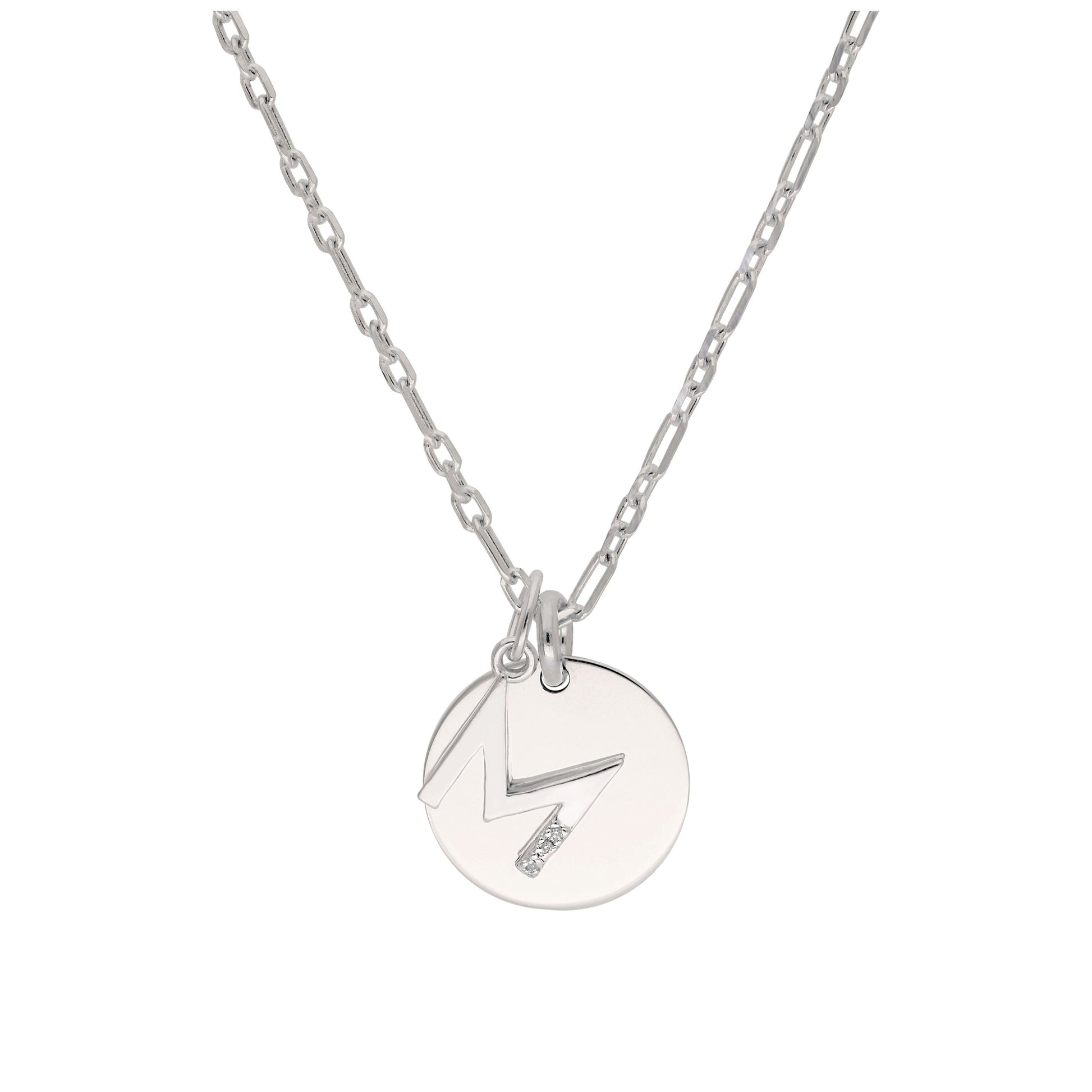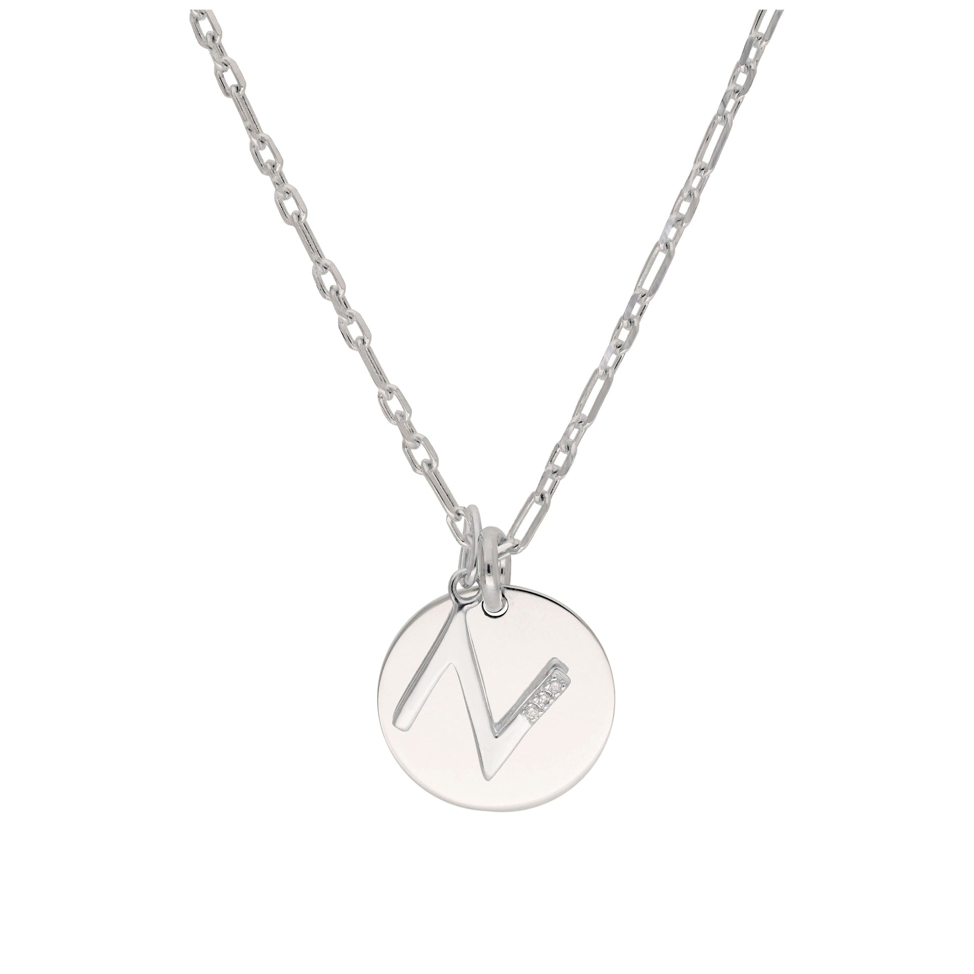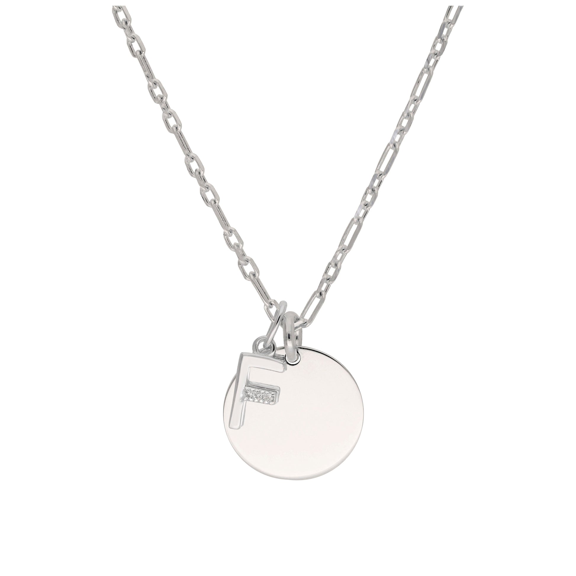 Sterling Silver & Triple 1.2pt Diamond Letter A - Z & Engravable Tag Necklace 16 - 24 Inches