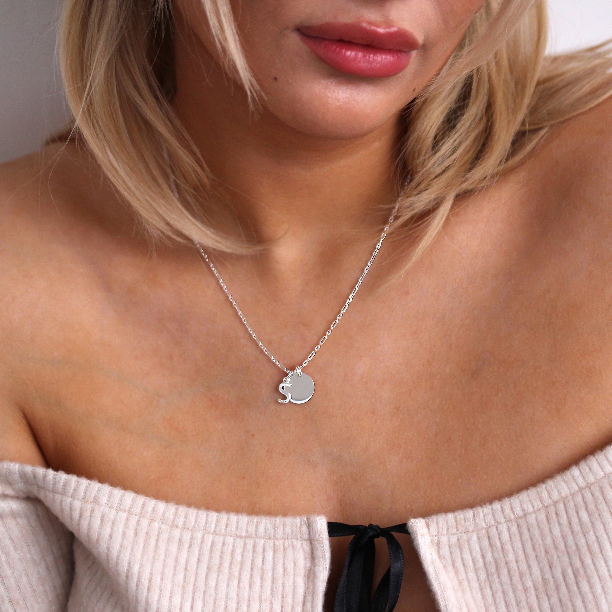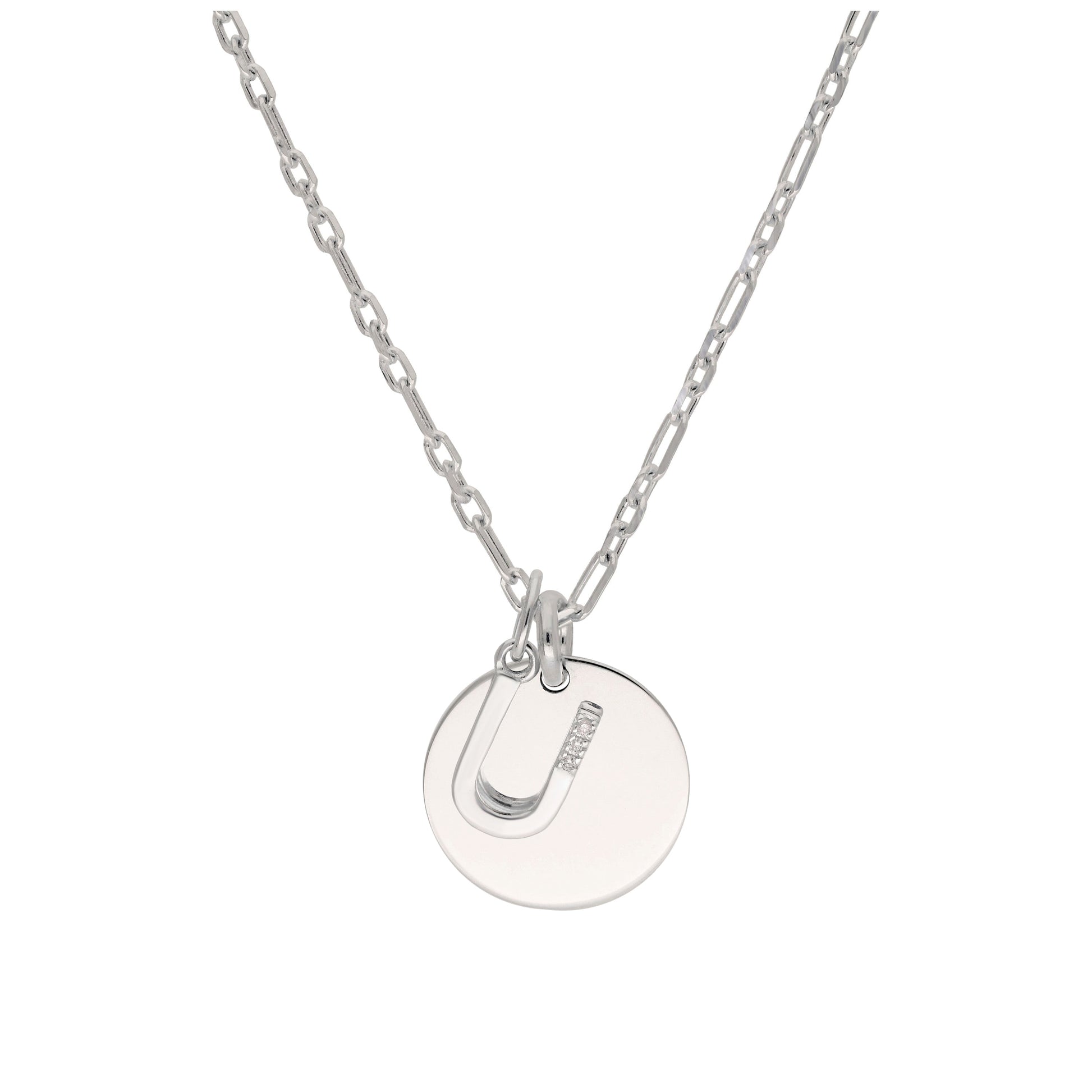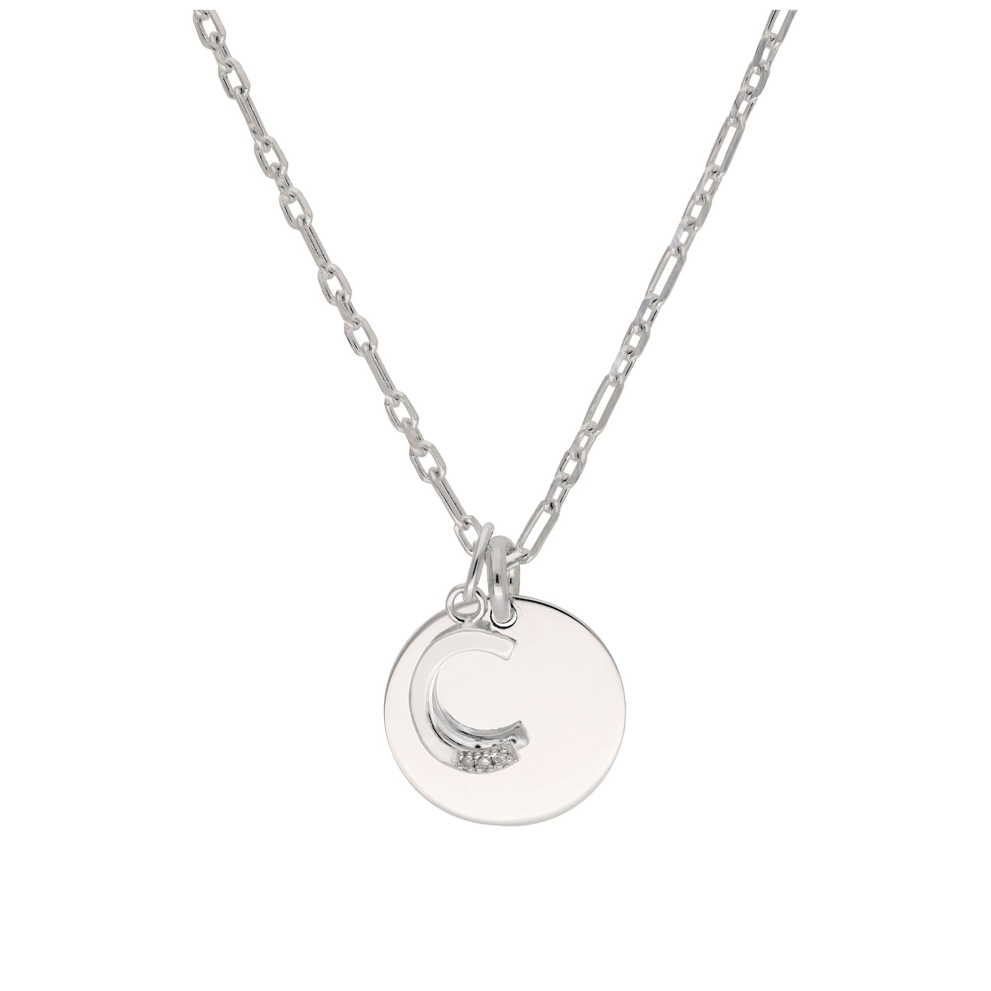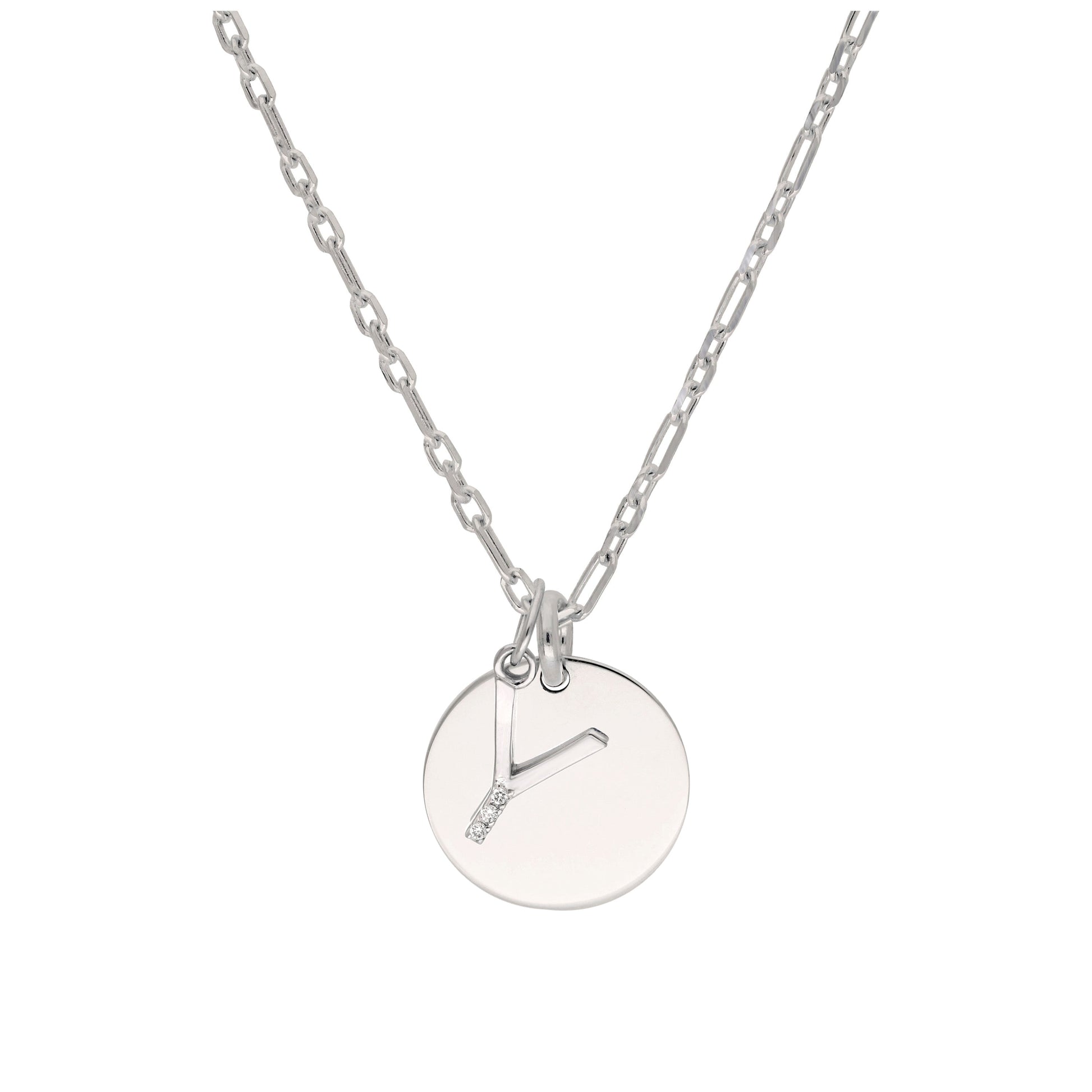Sterling Silver & Triple 1.2pt Diamond Letter A - Z & Engravable Tag Necklace 16 - 24 Inches