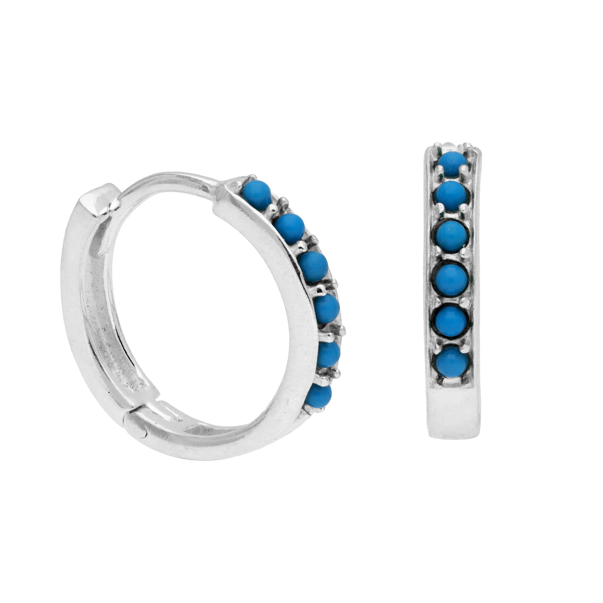 Sterlingsilber Türkis CZ Pavé Fassung 15mm Klappcreolen Ohrringe