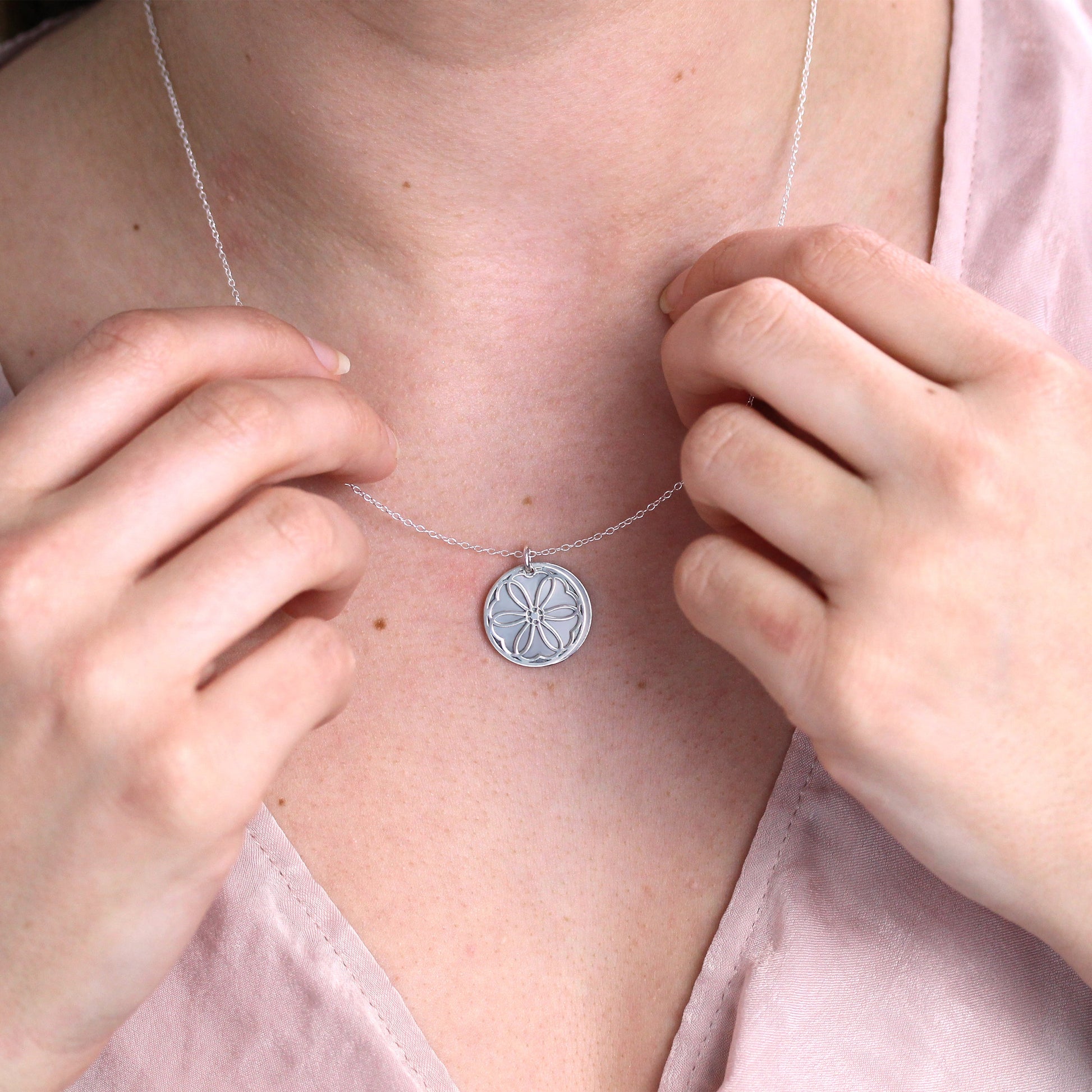 Sterling Silber Violett Blume & 18mm Tag Halskette 14-22 Zoll