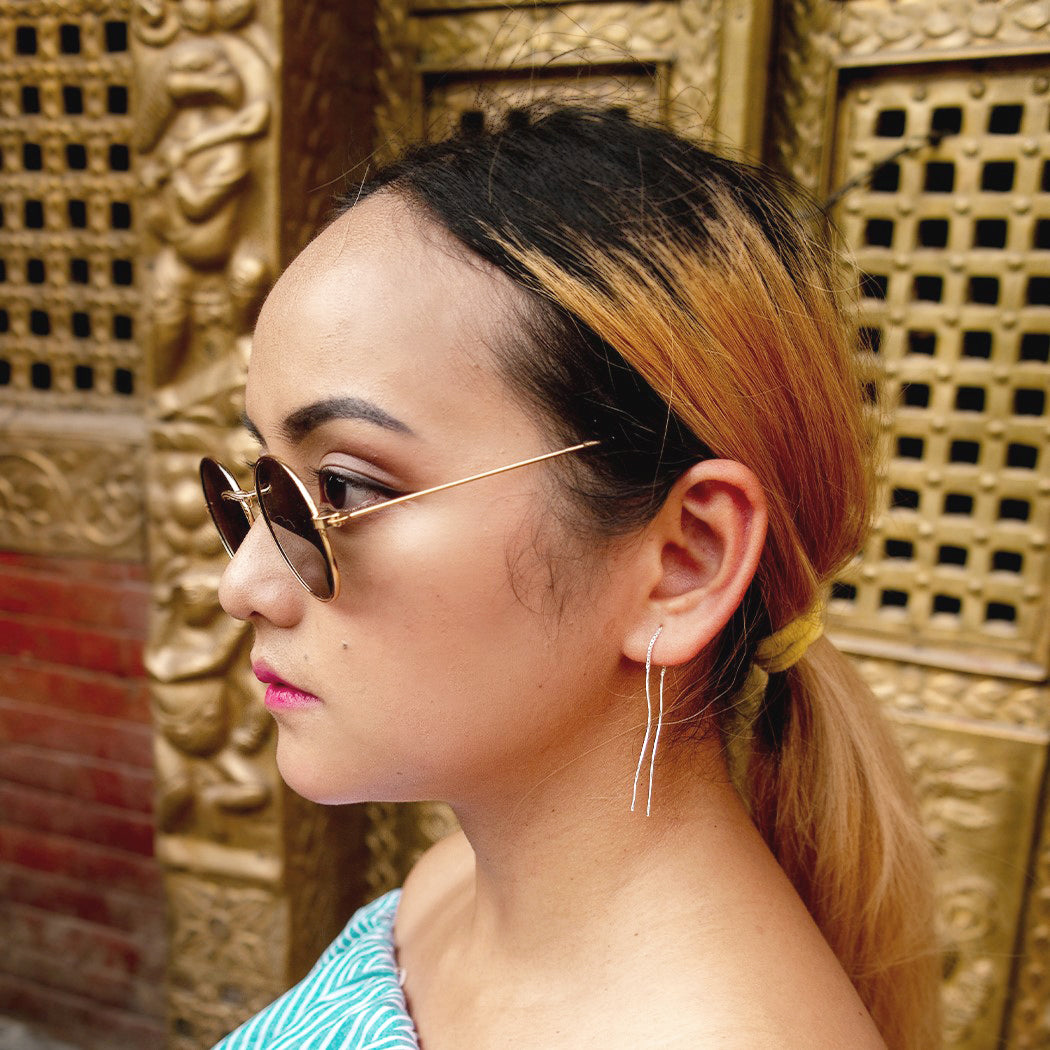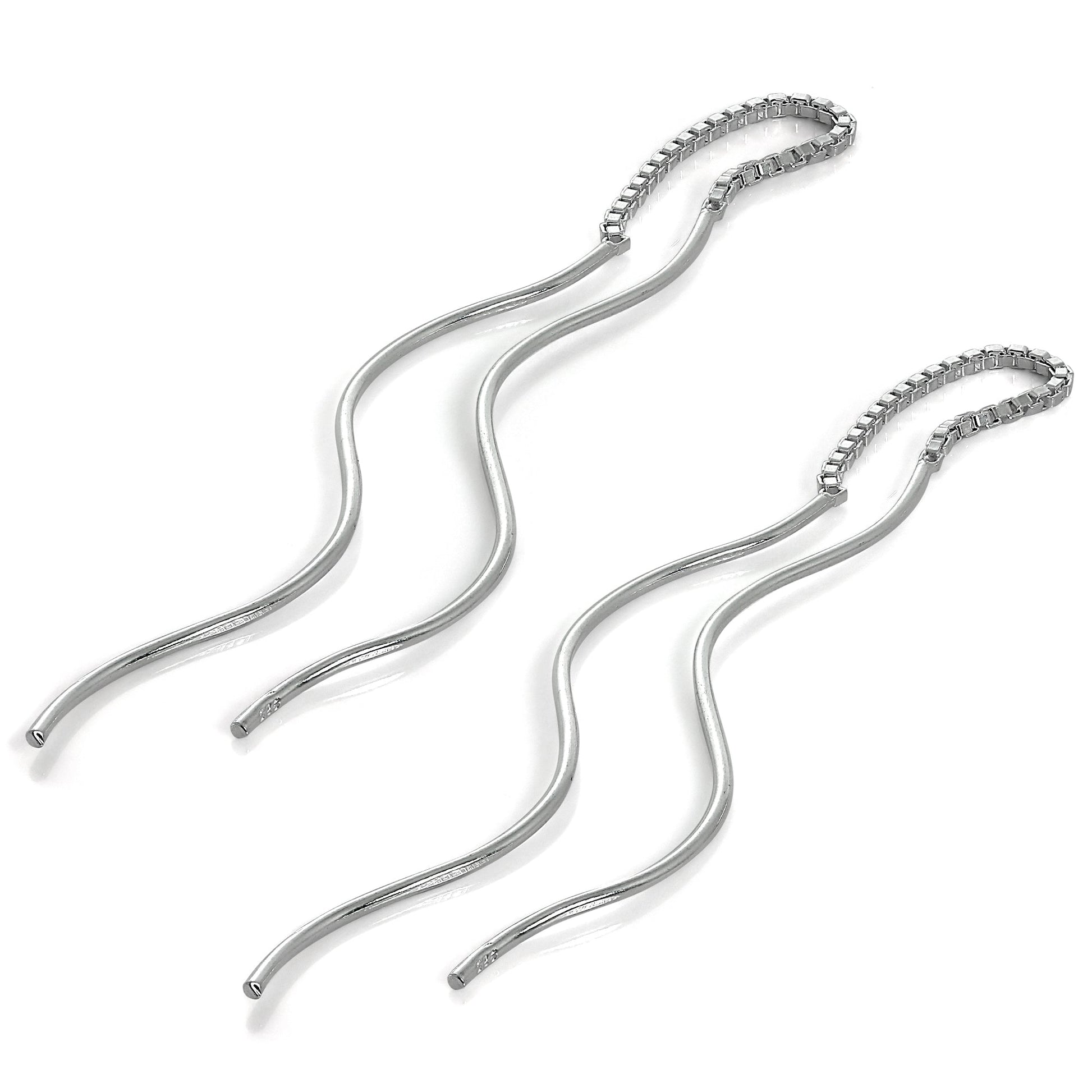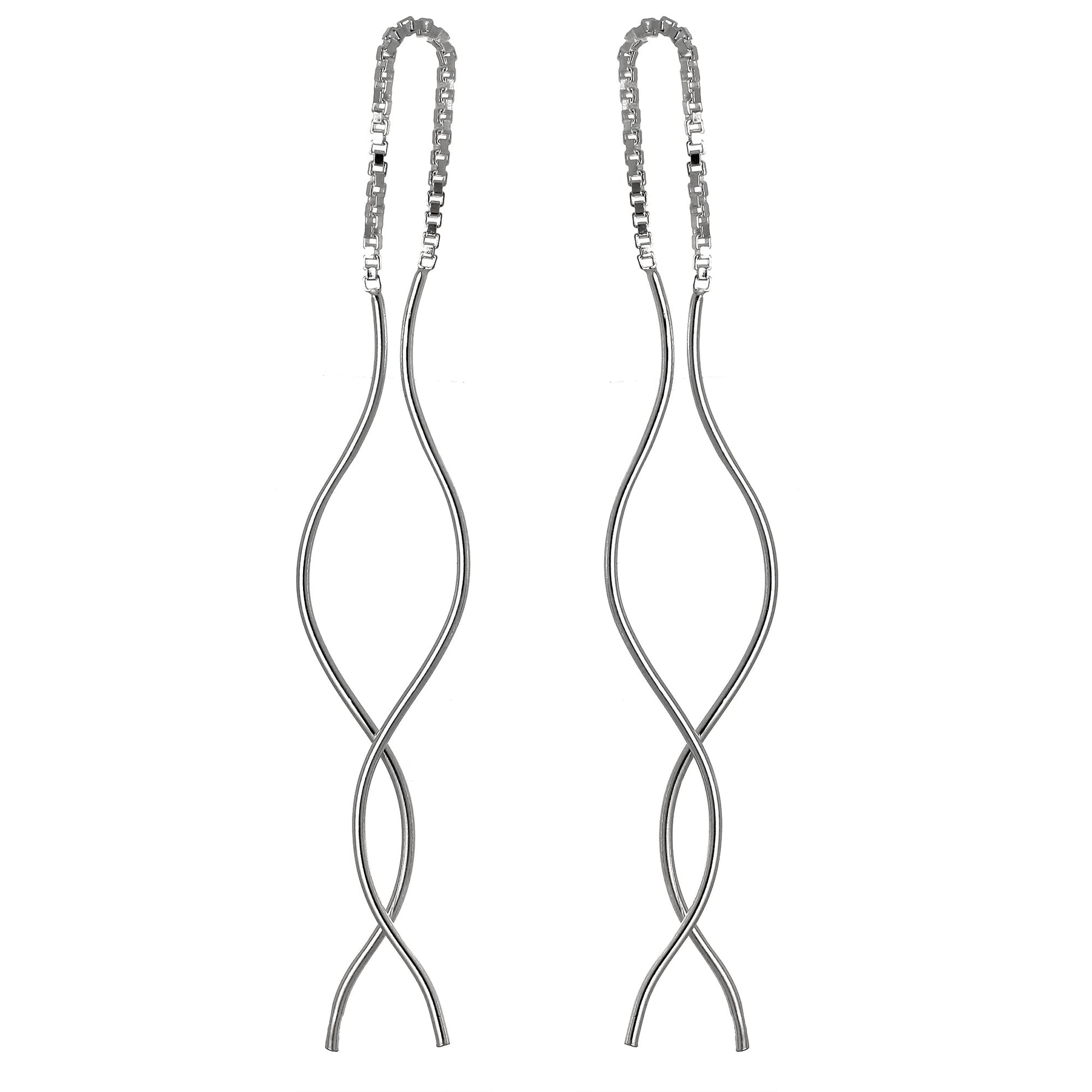 Sterlingsilber Wellig Stange Lang Baumel Durchzieher Ohrringe