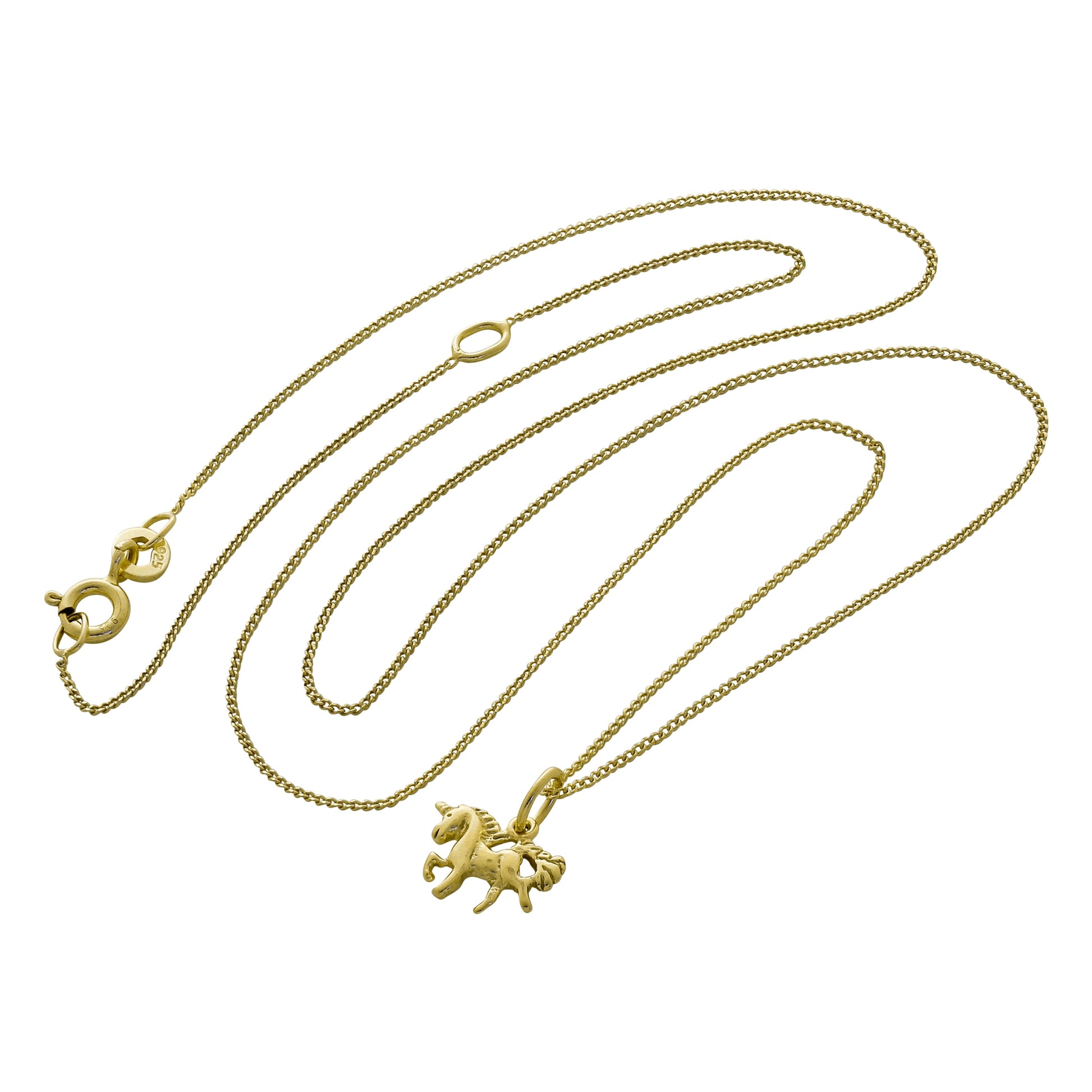 Kleine vergoldete Sterling-Silber-Einhorn-Halskette 14–32 Zoll